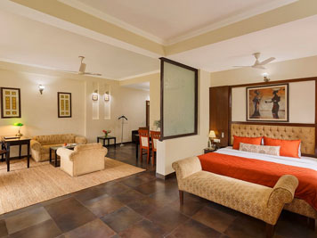 A spacious combination of luxury and comfort define the Super Deluxe Club room at Naturoville, the best wellness retreat centre in Rishikesh. These rooms consist of elegant decor and modern amenities for the deluxe leisure of the guests. Painted in warm colours, these rooms at our wellness centre in Rishikesh will help you further calm your senses and ensure a night of sound sleep.